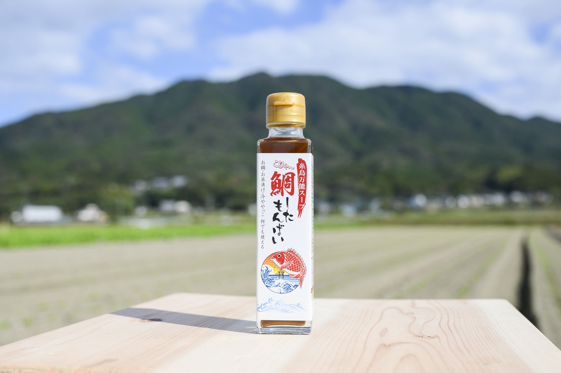 古くから真鯛漁が盛んで、真鯛の水揚げが日本一の糸島。鯛のアラだしと、北伊醤油を使った贅沢な万能スープです。鍋の素、出汁茶漬け、冷や奴、玉子かけご飯、お吸い物、おひたし等、何にでも使えます。お家ご飯で、魚介出汁の本格的な美味しさを味わっていただけます。